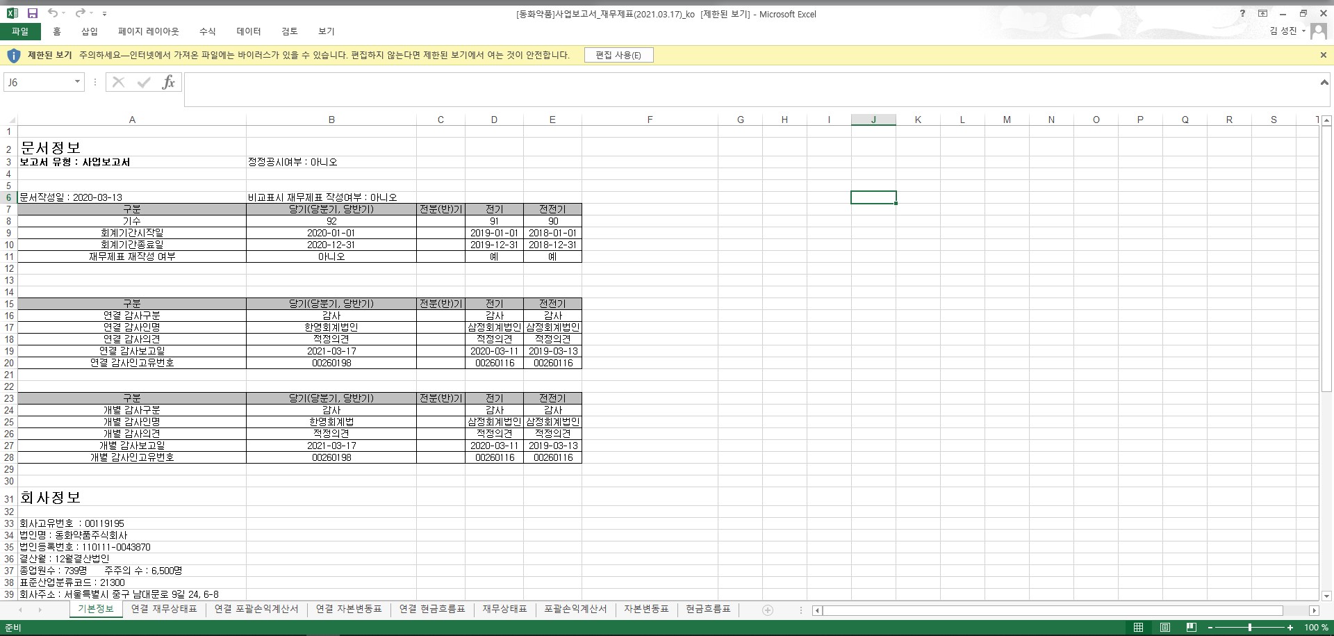 전자공시시스템에서 사업보고서를 열면, 그 단계에서부터 재무제표를 저장하기까지는 다시 여러 과정이 필요하다. 예전에 알아뒀다가 요즘 실행에 옮기고 있는 트릭이 있는데, 사업보고서 화면에서 재무제표를 깔끔한 형태의 엑셀 파일로 다운받을 수 있는 팁이 있다.
