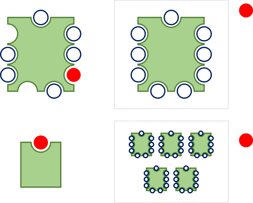 E-S의 시스템과 B-I의 시스템은 왜 다를까? 노동력 없이 굴러갈 수 있는 프로젝트는 흔치않을 텐데, B-I의 자판기는 왜 노동력 대신 자본 그 자체를 요구할까? 가장 중요한 차이는 '나'의 위치다. 그림의 빨간색 동그라미가 어디에 있는지 눈여겨 보자. E와 S에서의 '나'는 프로젝트에 소속되어 있어서, 노동력을 직접 제공한다. 그러나 B-I에서는 다르다. 노동력을 제공하고 수익을 얻는 '부품 역할'은 다른 사람에게 위임했다. '나'를 나타내는 빨간색 동그라미는 시스템 바깥에서 이 구조(들)를 소유한 채로, 프로젝트의 방향과 규모를 결정하는 역할만 맡는다.