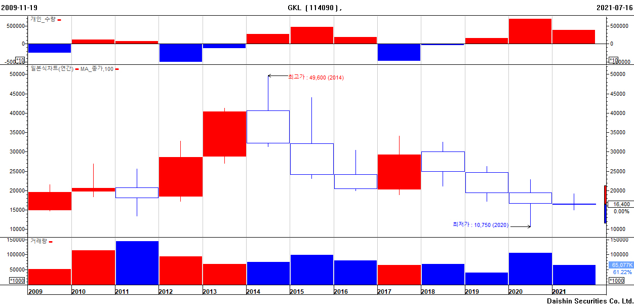 반면 코로나19 회복이 결정된 미래인가 하는 물음이 지워지지 않은 것도 사실이다. GKL이 컨센서스처럼 실적을 회복하려면 외국인 VIP들이 입국을 할 수 있어야 한다. 그런 세상이 올까? 어떤 영국 학자의 예상처럼 인류가 영원히 코로나19와 동거하게 되는 건 아닐지 걱정이 되기도 한다. 물론, 코스닥 종목을 검색해 성공을 거두었던 방식으로 코스피 트레이딩을 해본 경험이 없다는 사실도 꺼림칙한 부분이긴 하다.