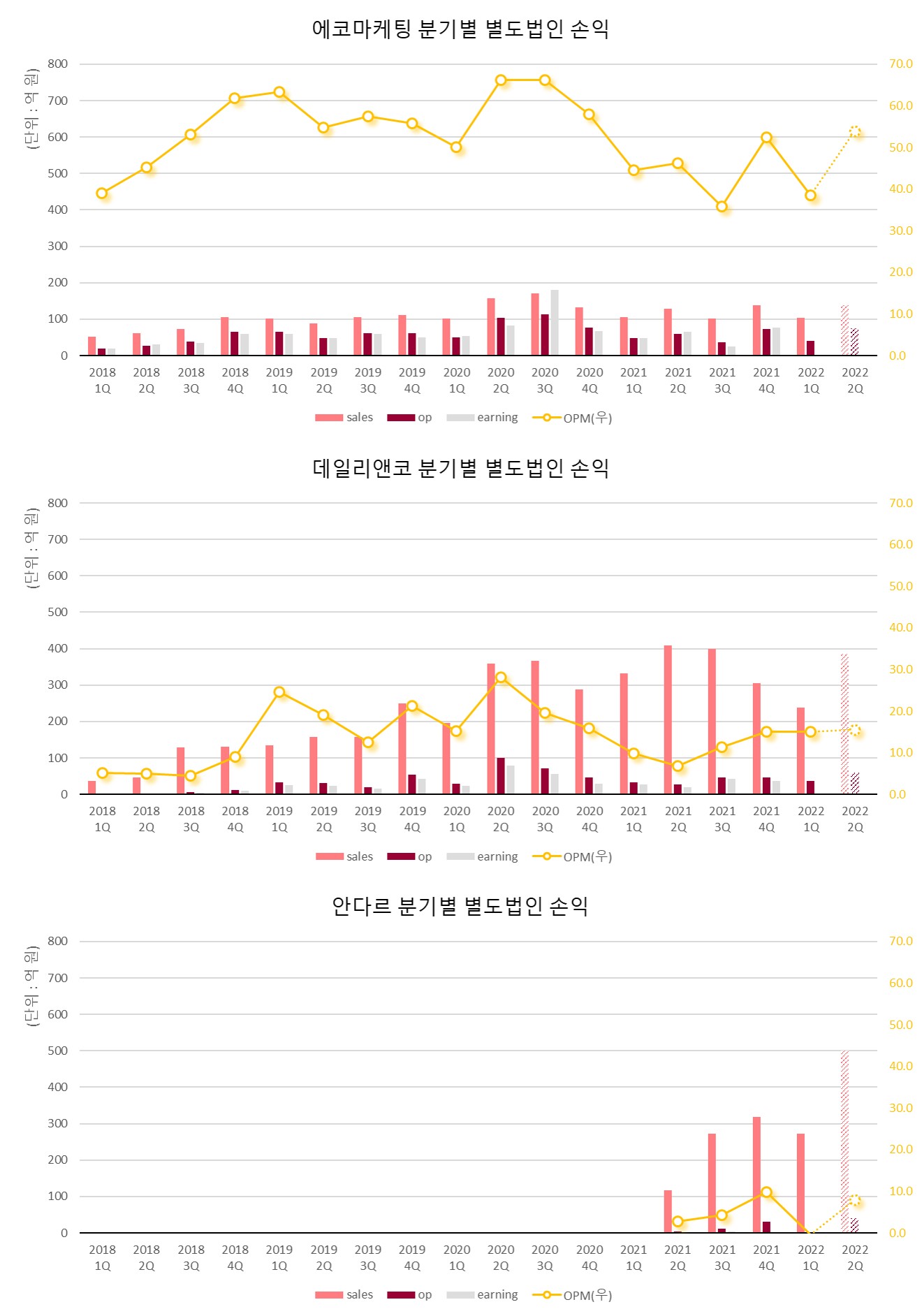 스스로 예고했던 날짜에 맞추어 에코마케팅이 1분기 잠정실적을 발표했다. 작년 4분기 안다르가 안착하는 모습을 보여준 듯해서 기대했는데, 기분 좋은 결과는 아니다.