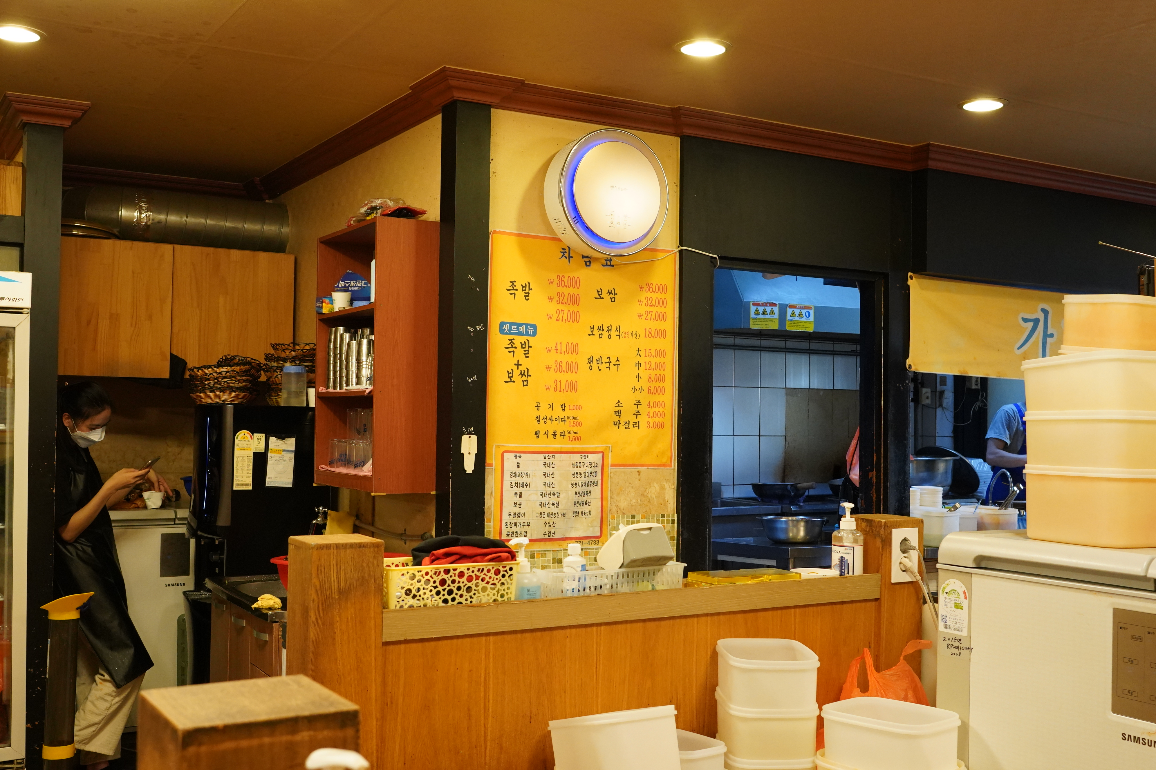 가마솥족발은 배달주문도 많고 손님도 많아서 주방 쪽은 분주해 보였다. 하지만 테이블은 대부분 방이나 파티션으로 구획이 잘 되어 있은 덕분에 뜻밖에도 독립적으로 마음 편히 먹는 데에만 집중할 수 있었다.