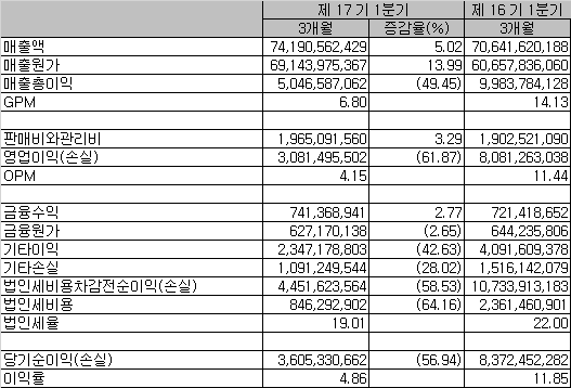 사족으로 약간의 희망을 발견하자면, 연초의 이러한 흐름에 시즈널리티가 보인다는 점이다. 작년 1분기에는 제품과 재공품의 재고가 이번보다 훨씬 많이 늘어났었다(재고자산의 변동). 지금은 너무나 귀찮아서 못하겠는데, 분기별로 최근 몇 년 동안의 재고자산 추이를 따로 모티너링 해보는 것도 재미있을 것 같다. 어쨌든 지금은, 매년 2~3분기 실적이 좋았고 올해와 작년 1분기 제품재고가 상당했다는 점으로 희망회로를 돌려보는 정도다.