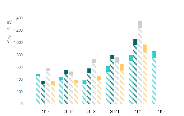 와, 이렇게 보면 바이오중유 가격도 엄청 오르긴 했다. 하지만 판매량이 적은 게 아쉽다. 전년도 연간 판매량의 1/10 수준이다. 제이씨케미칼의 경우 바이오중유의 생산능력에는 훨씬 여유가 있을 텐데 재고로 남은 제품 대부분이 바이오디젤인 것으로 봐서는, 아예 생산 자체를 많이 안한 것 같다. 뭐 이것도, 발전사가 비싸진 가격에 입찰 물량을 크게 내지 않았을 가능성이 높으니 어쩔 수 없기는 하다. 판매가격은 이 정도로 올랐는데, 원재료는 얼마나 올랐을까? 이것도 확인해 봐야 한다.