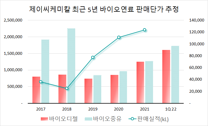바이오연료 판매가격은 YoY 60% 정도 올랐다.