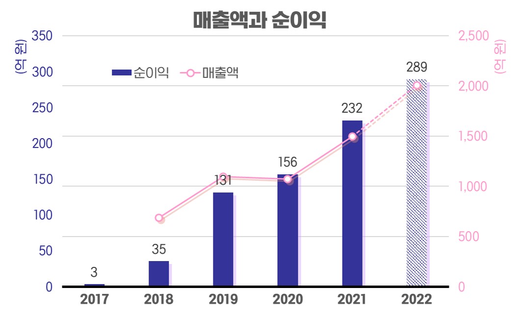 2개 분기가 남은 시점에, 그래도 올해 실적을 추정해봤다. 자세한 얘기는 생략하고, 난 개인적으로 매출액 2,011억 원, 순이익 289억 원을 예상하고 있다. 2019년부터 연평균 성장률을 계산하면 매출액과 순이익 모두 30%에 가깝다. 스고이.