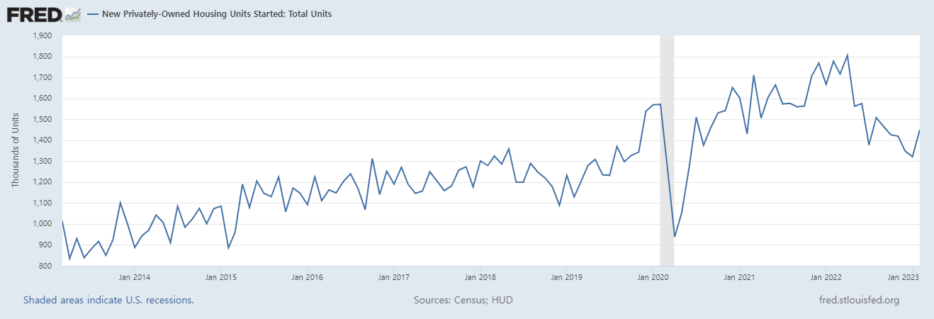미국 건축 시장이 돌아서는 것 아니냐는 희망 섞인 기사를 접했는데, 세인트루이스 연준 홈페이지에서 월간 데이터를 확인해보기로도 그런 해석이 터무니없는 것은 아니라고 생각한다. 물론 기존의 보일러/온수기 매출은 대부분 교체 수요에 의한 것이지만, 애초에 경동나비엔의 투자 센티멘털을 무너뜨렸던 요소들 중에 인플레이션으로 인한 건축 경기 침체라는 것도 있었으니까.