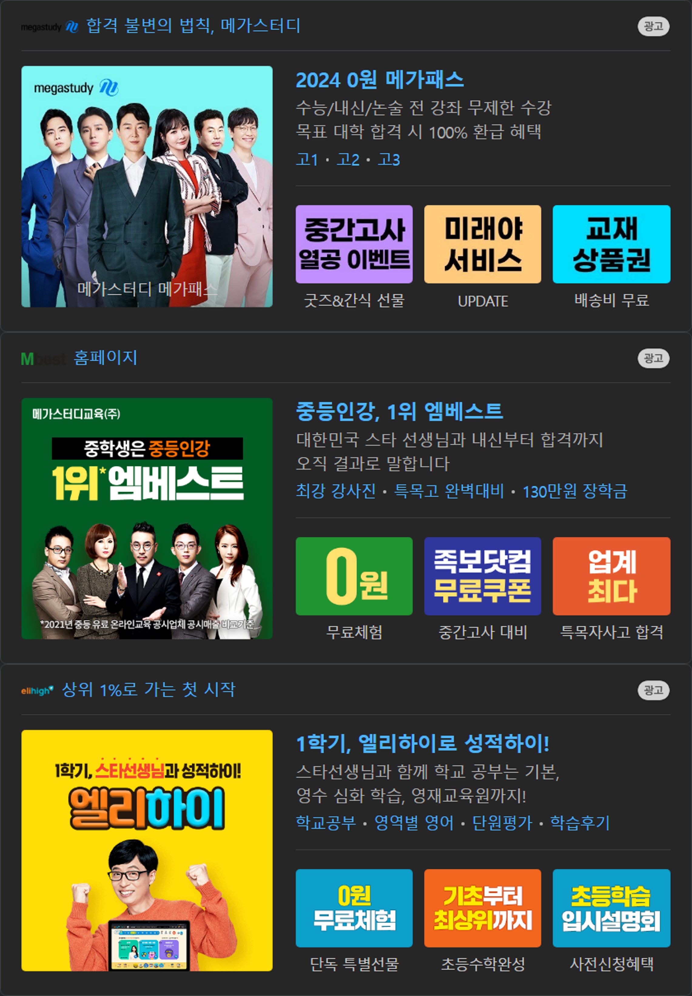 메가패스의 점유율은 압도적이다. 원동력은 당연히 일타 강사진이다. 예전에는 몇몇 정도였는데 지금은 군단 수준이다. 수험생은 선생님을 기준으로 학원을 선택할 수밖에 없다. 많은 수강생을 확보할 수 있는 학원은 더 높은 연봉과 교재 판매력으로 더 좋은 강사를 유인할 수 있게 된다.