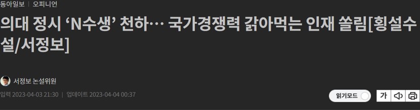 올해부터 업무가 바뀐 나는 의대 정원에 관련된 뉴스를 추적하고 있다. 그런데 이공계 인재들의 의대 쏠림 현상도 덩달아 검색된다. 교육에 20년 동안 바뀐 게 없구나 싶다. 아, 변한 것도 있다. 요즘은 고등학교 야자 시간에 다들 이어폰을 꽂고 인강을 듣는다고 한다. 그래서 찾았다.