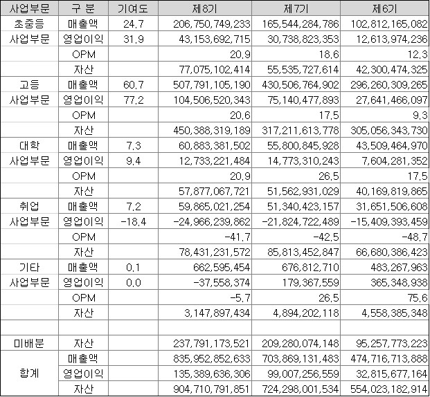 손주은 이사회 의장의 동생 손성은 대표가 경영을 맡아 사업을 확장해 나갔다. 메가패스처럼 굴러가는 온라인 교육 사업을 중학생, 초등학생, 유아들을 대상으로도 확장하는 한편, 공무원 수험 시장의 1위 사업자를 인수하기에 이르렀다.