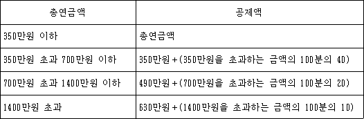 제47조의2(연금소득공제) ① 연금소득이 있는 거주자에 대해서는 해당 과세기간에 받은 총 연금액에서 다음 표에 규정된 금액을 공제한다. 다만, 공제액이 900만원을 초과하는 경우에는 900만원을 공제한다.