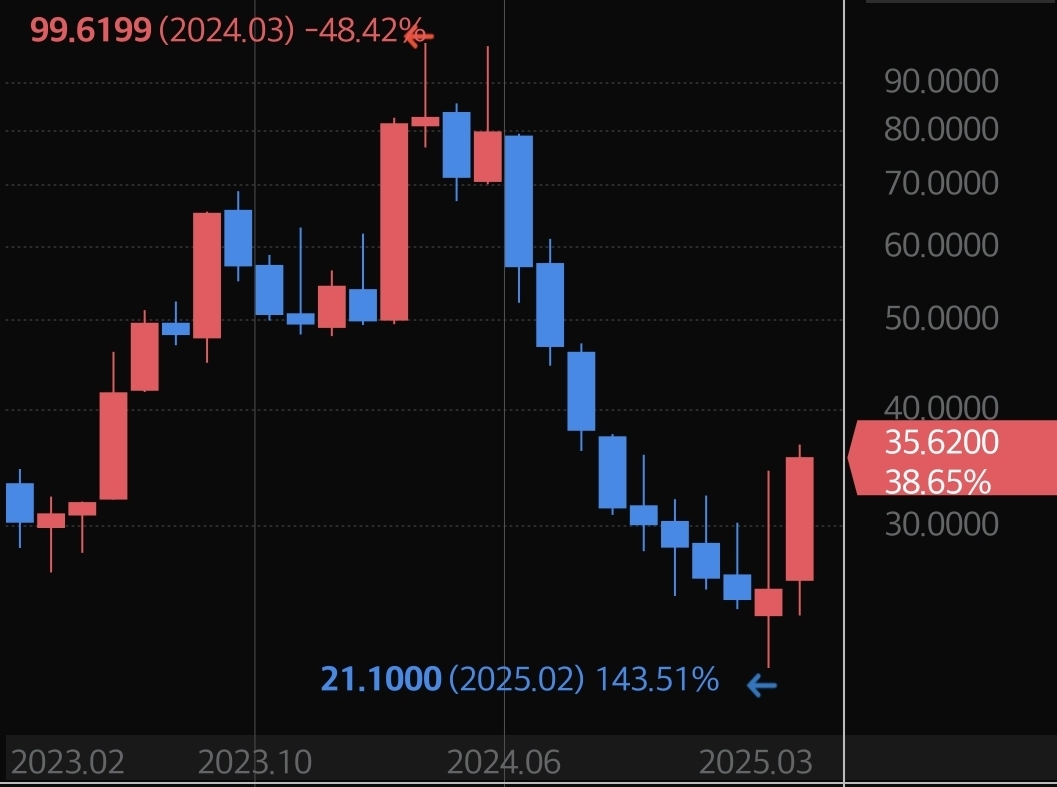 그때 주가는 최고점 99.61 달러에서 최저점 21.1 달러까지