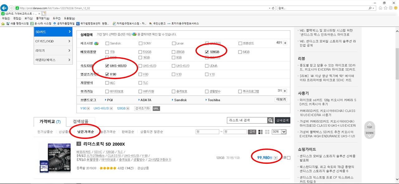 덜나와에 검색해보니 20~30만 원을 생각해야할 것으로 보였습니다. SD카드 제조사로는 소니와 샌디스크, 그리고 렉사 등이 유명합니다. 그리고 얘네들 제품이 당연히 비쌉니다. 비싼 만큼 더 좋은지는 다 써보질 못해서 모르겠습니다. 일단 저는 숫자로 된 스펙만을 믿습니다. 속도 빠르고, 용량 크고, 가격 저렴하면 되는 것이죠.