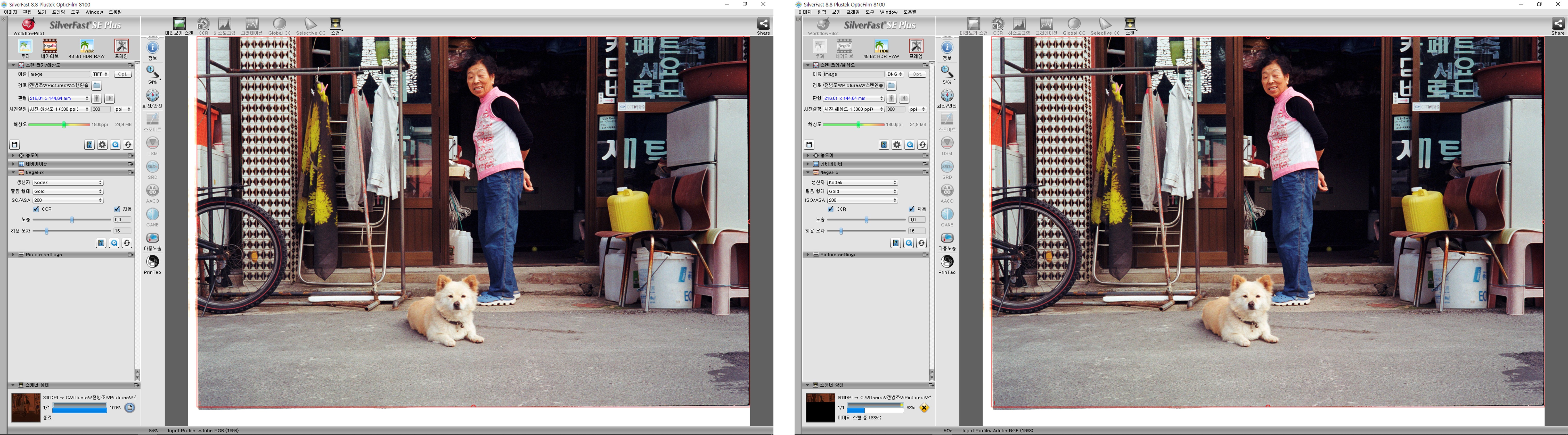 촬영한 필름을 현상소에 맡기면 편리하기는 하다. 그분들도 워낙 바쁘다보니, 스캔 유틸리티가 가지고 있는 필름 종류별 기본설정으로 해서 한꺼번에 JPEG 파일을 만든다. 나만의 시선이나 느낌을 담아낼 수 없다는 점과, 네거티브필름 특유의 디테일하고 섬세한 명부 색 표현이 8비트 속으로 뭉뚱그려진다는 점이 가장 아쉽다. 내가 직접 필름을 스캔하면, 16비트 심도의 원본 사진을 저장해두고 내가 원하는 느낌으로 보정하는 게 가능해진다.