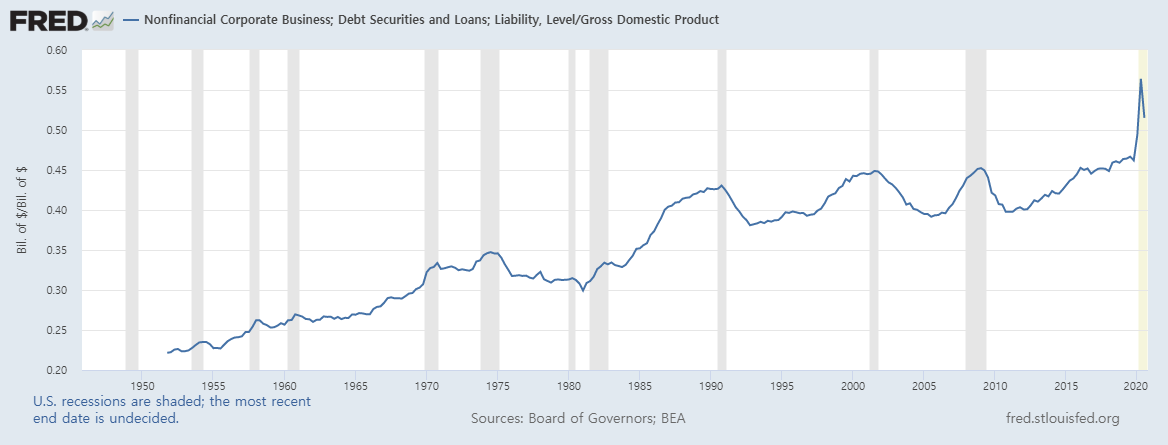2008년 금융위기 이후 미국의 주식시장에는, 터졌던 버블이 다시 고여들기 시작했다. 사이클 상으로 봐서는, 이제 그만 부풀 때도 됐었다. 코로나가 터졌다. 버블이 터지기 전에 연준은 영혼을 끌어모아 연장전을 선언한다. 버블은 파괴를 유예받았다. 누구도 가본 적 없는 부채규모라, 그래프도 더는 갈 곳이 막막한 듯하다.